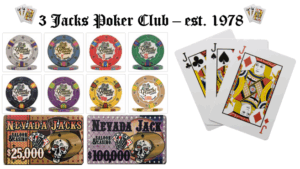 Welcome to the 3 Jacks Poker Club! Started on the US West Coast in 1978 by three guys (only one named Jack), it grew over the years to have over 70 members in its heyday. As time went on it slowly lost steam when two of the founders moved away. The club went dormant in the mid 90s, but resurfaced on the US East Coast in the early 2010s.